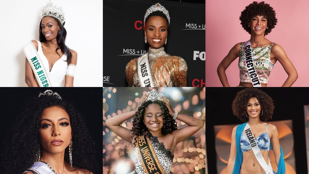 Durante este ano de 2019 vimos varias mulheres negras terem destaque por sua beleza sendo de alguma forma destacada, seja nas passarelas ou com marcas em suas propagandas e anúncios, as mulheres pretas estão mais presentes nestes locais como protagonistas e referencia para outras mulheres, Viola Davis por exemplo se tornou embaixadora L’ Oréal Paris e Normani com a grife Fenty de Rihanna, e aqui no Brasil temos vairas mulheres pretas sendo embaixadoras de grandes marcas de roupas e cosméticos. Mas com certeza esse ano foi o ano das Misses pretas, a começar pelas americanas Cheslie Cryst, Kaliegh Garris e Nia Imani Franklin que são as Miss EUA, Miss Teen 2019 e Miss America 2019 respectivamente, as premiações são as principais dos EUA. Cheslie Cryst chegou no top 10 do Miss Universe de 2019.