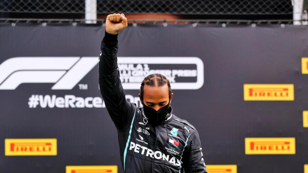 Estamos juntos e lutamos. A equipe de hoje ficou de joelhos, o que foi incrível ao ver que juntos podemos aprender, ter a mente aberta e consciente do que está acontecendo no mundo. Hoje vencemos, mas ainda temos um longo caminho a percorrer. Muito obrigado a todos da minha equipe, aqui na pista e de volta à fábrica. Espero que você tenha orgulho do que estamos defendendo e alcançando juntos. Um enorme agradecimento a todos vocês #TeamLH, agradeço todo o seu apoio e suas mensagens positivas, você realmente me fez continuar ‘ #StillWeRise – Lewis Hamilton via instagram