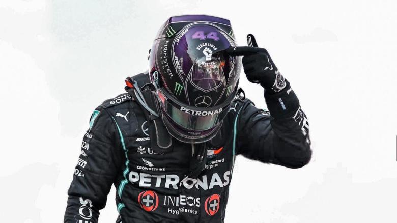 Ao sair do carro após a vitoria o piloto apontou para a imagem com a um punho cerrado e a frase “Black Lives Matter” em seu capacete.