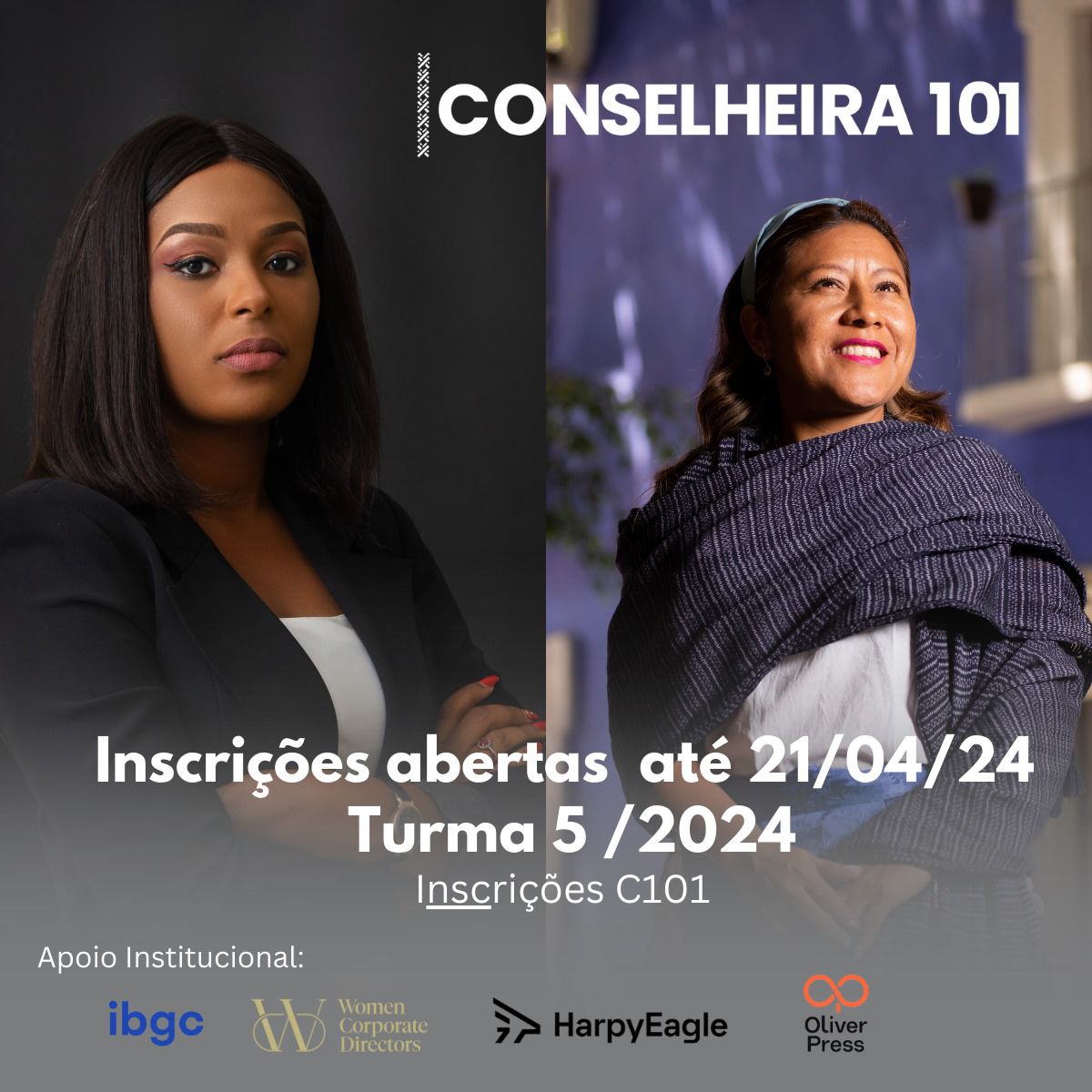 Estão abertas as inscrições para a quinta turma do Conselheira 101, programa de incentivo à diversidade de gênero e étnico-racial nos Conselhos de Administração, Conselhos Consultivos e Comitês das empresas brasileiras. Por meio de encontros online e eventos presenciais, a iniciativa atua na ampliação do conhecimento de lideranças femininas negras e indígenas sobre o papel dos Conselhos e Comitês e amplia o networking das participantes com a comunidade de governança corporativa.