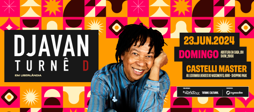 O cantor e compositor Djavan retorna à Uberlândia neste mês. A lenda da música brasileira se apresenta na cidade no dia 23, no Castelli Master, às 20h30, com a turnê “D”, show com o qual ele está percorrendo todas as regiões do país. Restam poucas entradas disponíveis, segundo as agências Timbre Cultural e Hibrido.CC, empresas responsáveis pela realização do show em Uberlândia.
