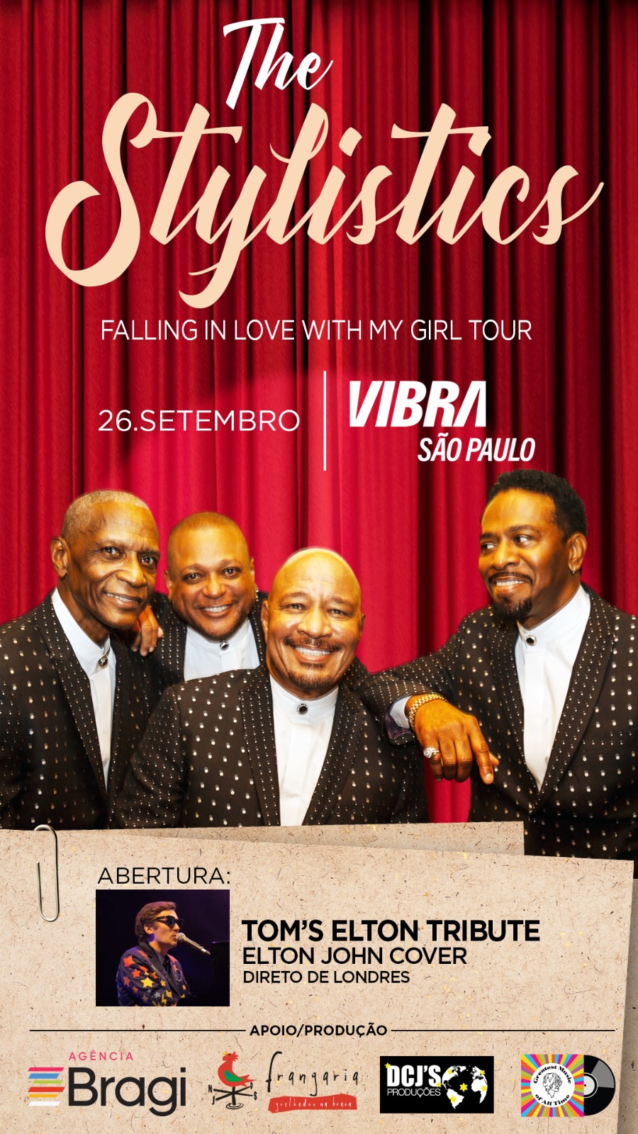A banda norte-americana The Stylistics, um dos grandes ícones da história do R&B e soul, confirmou recentemente que trará ao Brasil o elogiado show da turnê mundial “Falling In Love With My Girl Tour”, em que celebra a bem-sucedida carreira e o lançamento do seu novo álbum.