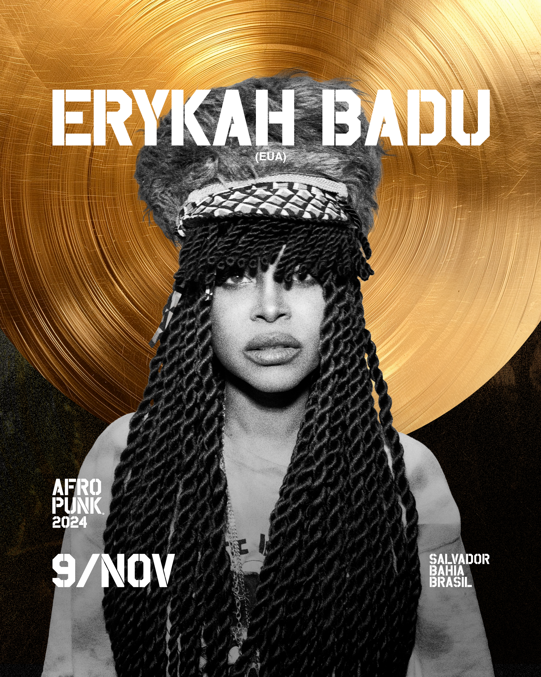 Após performances viscerais nos dois dias de AFROPUNK BLKTOPIA, no Brooklyn (USA) – coração do movimento afropunker –, a Rainha do Neo-Soul Erykah Badu se prepara para voltar ao Brasil, para sua estreia em Salvador. A aclamada artista trará toda a sua energia e espiritualidade para o palco do AFROPUNK Brasil, na cidade mais negra fora da África. Com uma potência que atravessa gerações, a sonoridade eclética de Badu, que mescla soul, jazz, hip-hop e R&B, aterriza em Salvador como quem volta pra casa, amplificando as conexões entre todos que estarão presentes. A artista embala o primeiro dia de festival, em que se apresentam também Jorge Aragão, Léo Santana, Planet Hemp, Duquesa, Melly, Ilê Aiyê convida Virginia Rodrigues, e Irmãs de Pau e Evylin.