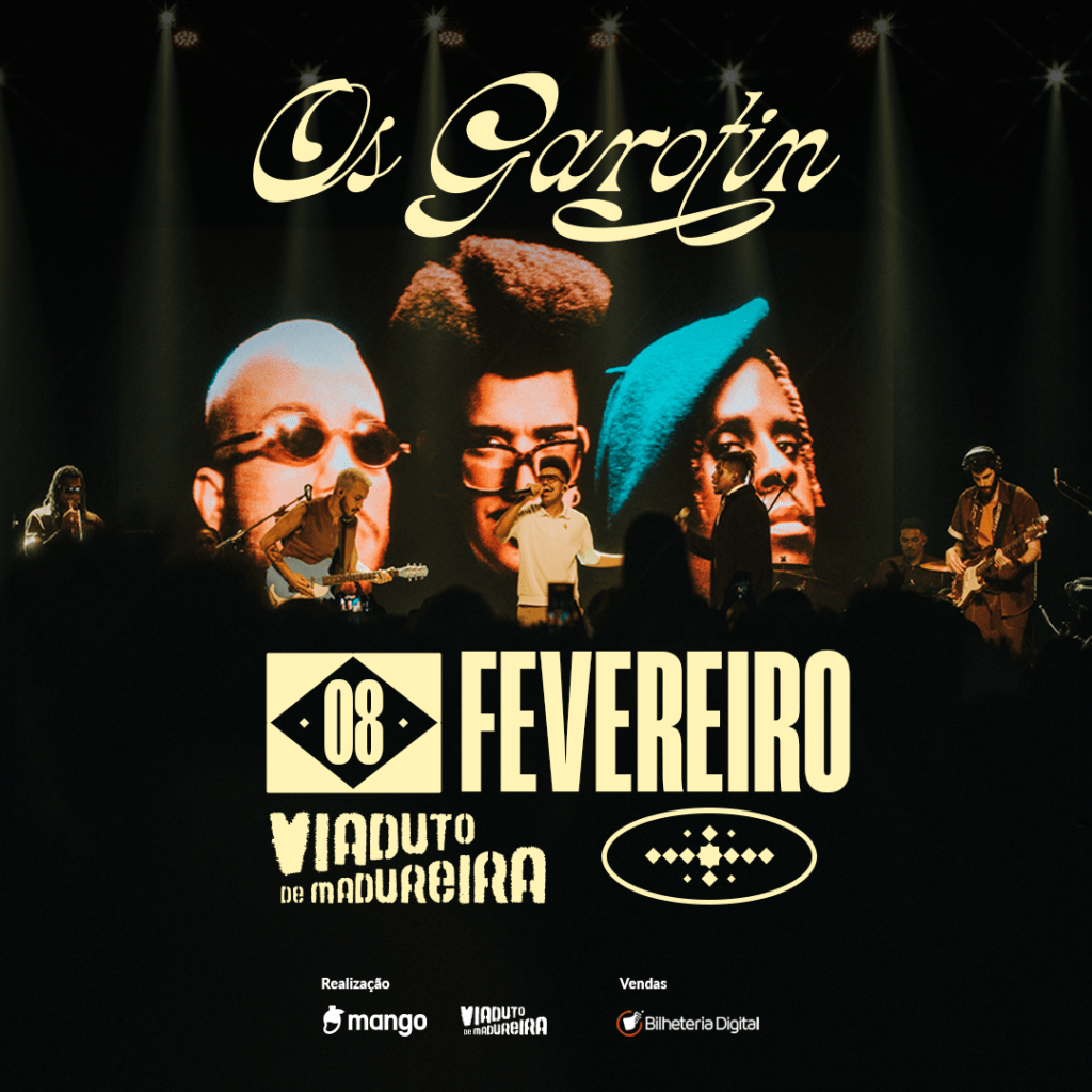 Premiados como “Melhor Álbum Pop Contemporâneo em Língua Portuguesa” na última edição do Grammy Latino, com o lançamento do aplaudido disco de estreia Os Garotin de São Gonçalo (2024), o trio formado por Anchietx, Cupertino e Leo Guima abre 2025 celebrando em casa. O grupo que vem trilhando uma trajetória meteórica, com sold out em casas icônicas como o Circo Voador e a Casa Natura Musical, agora, subirá ao palco do Viaduto de Madureira. No dia 08 de fevereiro de 2025, Os Garotin se apresenta em um dos bailes mais antigos do Rio de Janeiro, amplificando a energia e charme da cena black carioca.