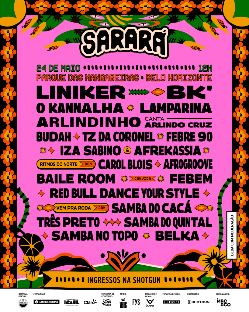 O Festival Sarará chega à sua 12ª edição com um line-up que reafirma o compromisso com a diversidade, a identidade e a celebração da cultura brasileira. No dia 24 de maio de 2025, o Parque das Mangabeiras, em Belo Horizonte, será palco de encontros únicos entre diferentes sons, ritmos e gerações. O evento que já tem Liniker e BK’ entre atrações, agora revela a programação completa, trazendo ainda mais potência para a experiência do público. Entre os destaques está o show inédito de Arlindinho cantando Arlindo Cruz, uma homenagem emocionante ao legado de um dos maiores nomes do samba. O festival reúne ainda: O Kannalha, Lamparina, Budah, TZ da Coronel, Febre 90, Iza Sabino e Afrekassia, Afrogroove, além das apresentações “Ritmos do Norte com Carol Blois”, “Baile Room convida Febem”, “Red Bull Dance Your Style” e o projeto “Vem Pra Roda” – que neste ano traz o Samba do Cacá, Três Preto, Samba do Quintal, Samba no Topo e Belka.