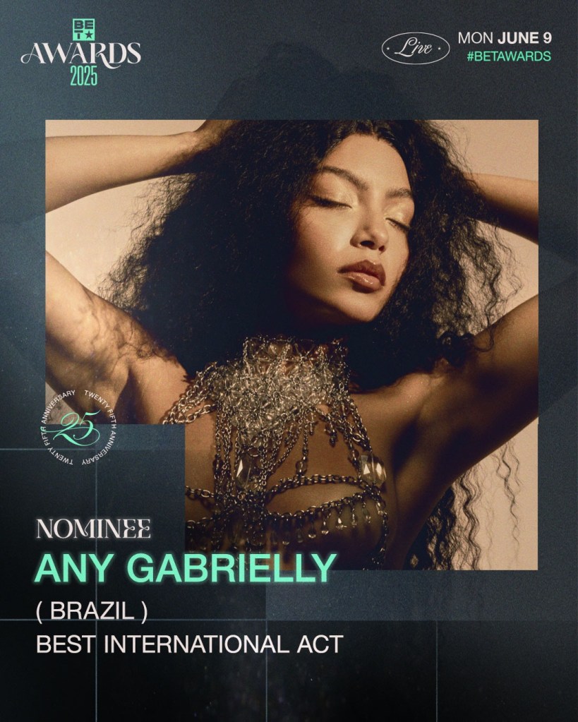 Concorrendo na mesma categoria que MC Luanna, Any Gabrielly também disputa o prêmio Best International Act. Com uma trajetória artística iniciada ainda no público infantil, ela deu voz à personagem Moana na versão brasileira do filme da Disney e integrou o elenco do musical O Rei Leão aos nove anos. Alcançou fama internacional ao integrar o grupo global Now United, idealizado por Simon Fuller, onde representou o Brasil diante de milhões de fãs. Em 2023, iniciou sua carreira solo, agora sob a gestão de Fuller e com contrato assinado com a Republic Records, uma das principais gravadoras norte-americanas.