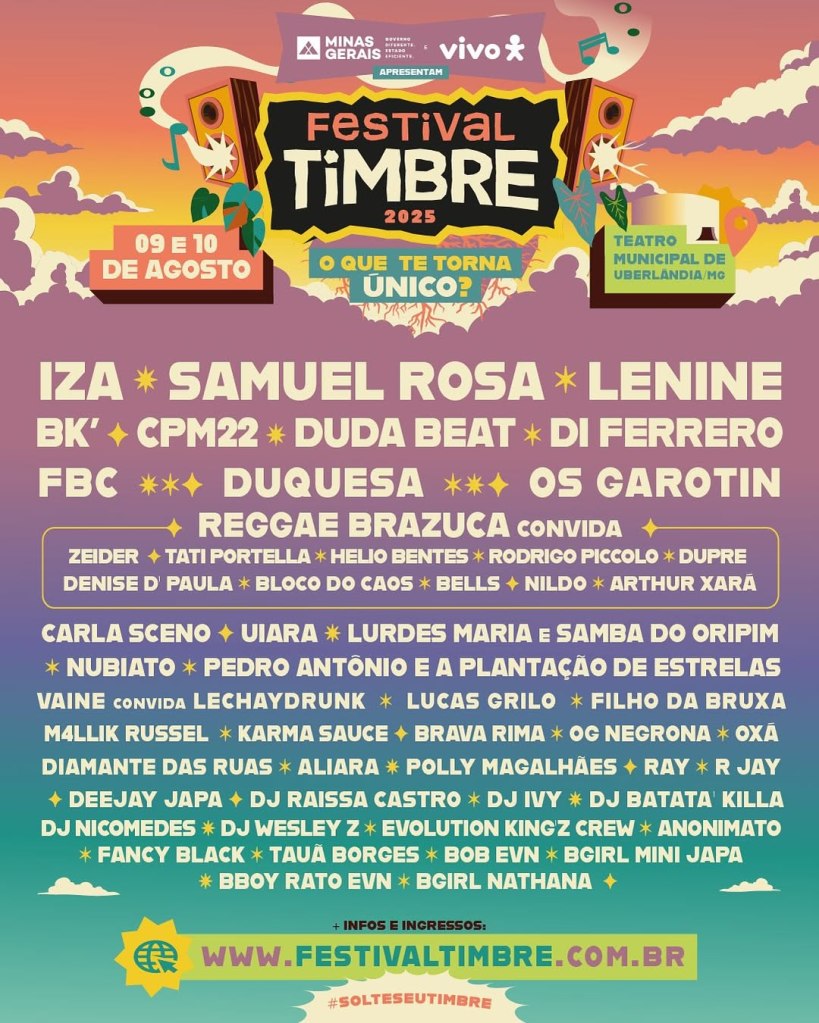 Ao destacar o hip hop em sua pluralidade — do rap ao break, do grafite à poesia falada — o Festival Timbre reforça sua missão de ser um espaço que valoriza as vozes que movem as ruas do país, acessível, inclusivo e sintonizado com os movimentos culturais que nascem e crescem nas margens, mas ecoam no centro.