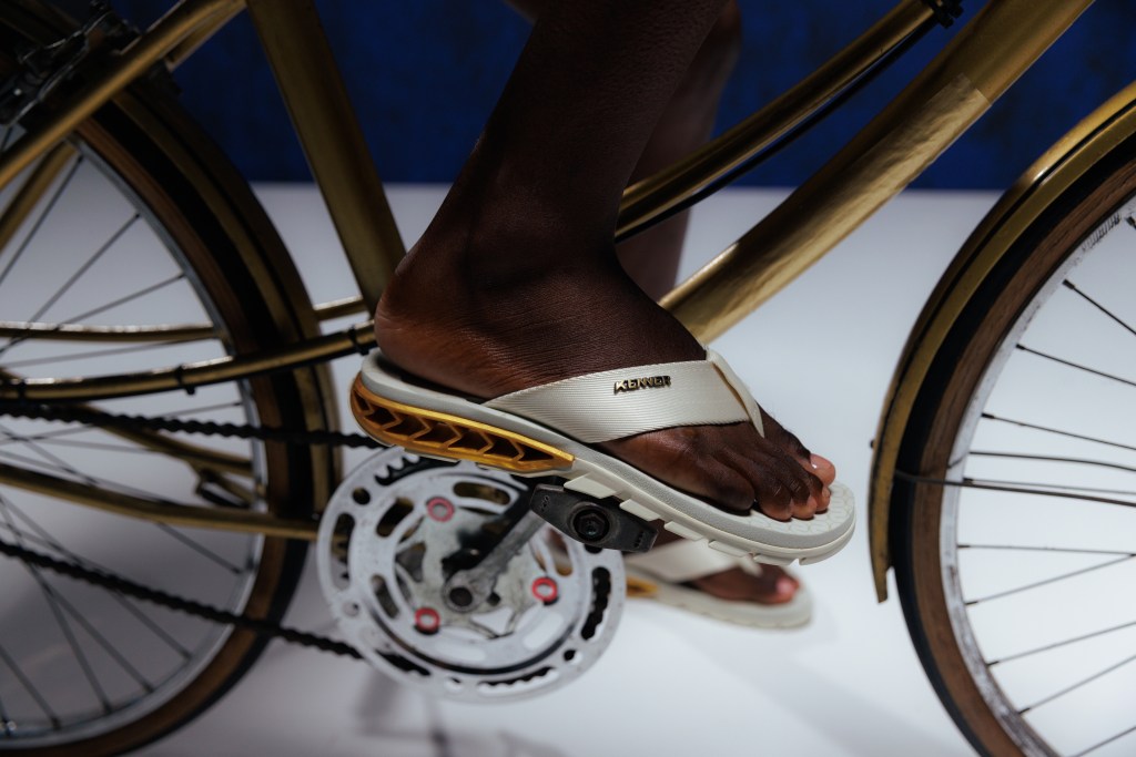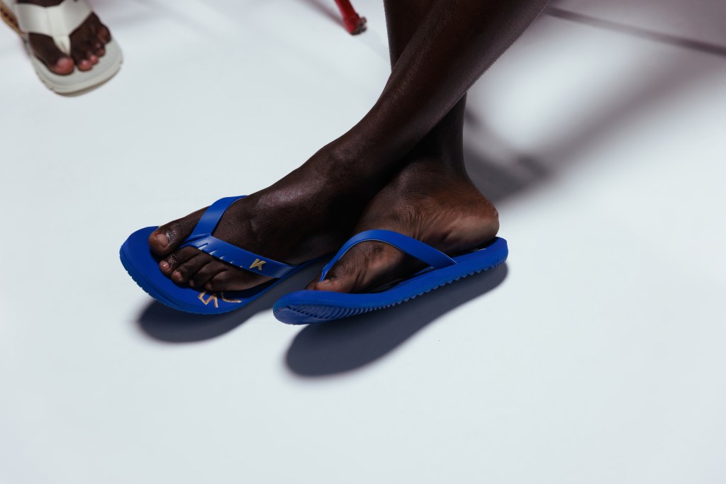 “Tudo foi pensado junto ao time criativo da Kenner desde o início. As sandálias, além da arte autoral, aparecem também com elementos muito evidentes e específicos do meu trabalho, como a rosa dourada e a estrela. Um dos modelos traz uma arte feita para o projeto: um garoto negro de olhos fechados voando com asas feitas com o ‘K’ icônico da marca. Pensamos nas sandálias de uma forma que traduzisse aquilo que tenho de mais meu como artista, em união com DNA da marca”, contou Saturno.