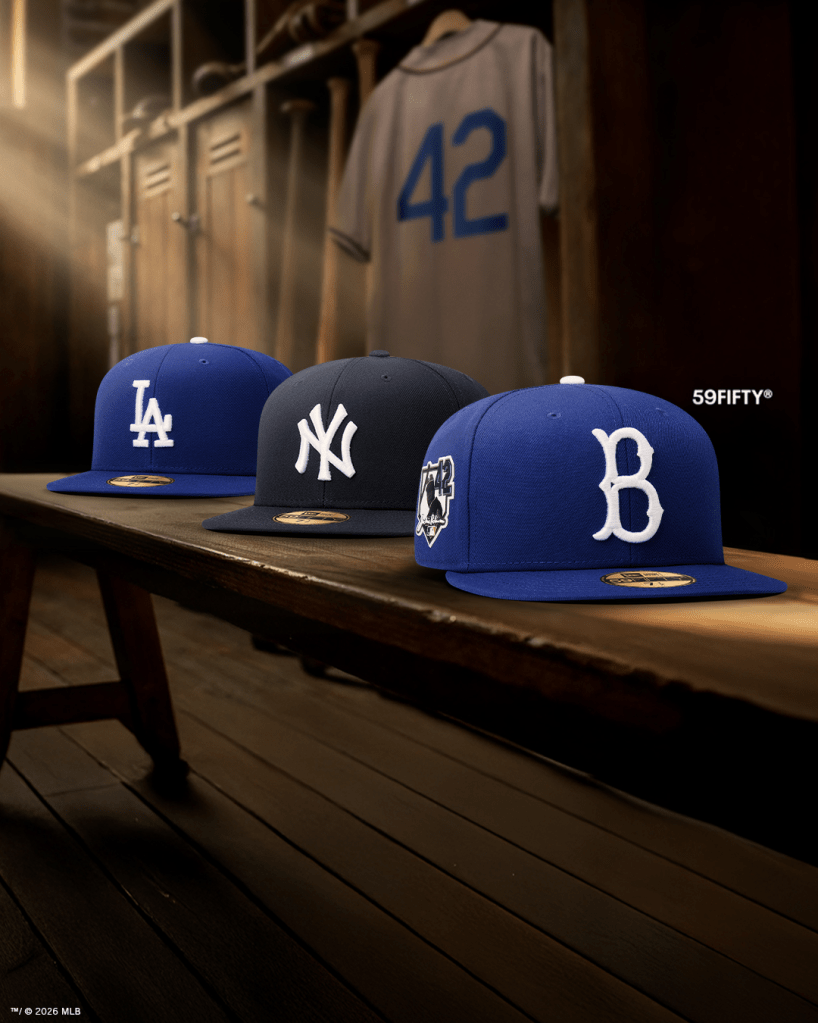 A coleção tem como base o boné 59FIFTY em versões dos times Brooklyn Dodgers, New York Yankees, Los Angeles Dodgers e Kansas City Royals, reinterpretadas a partir de uma estética unificada que destaca o número 42 — eternizado por Robinson e aposentado em toda a MLB como homenagem permanente ao seu impacto no esporte.